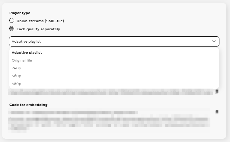 - "Union streams" - with quality switcher in the player